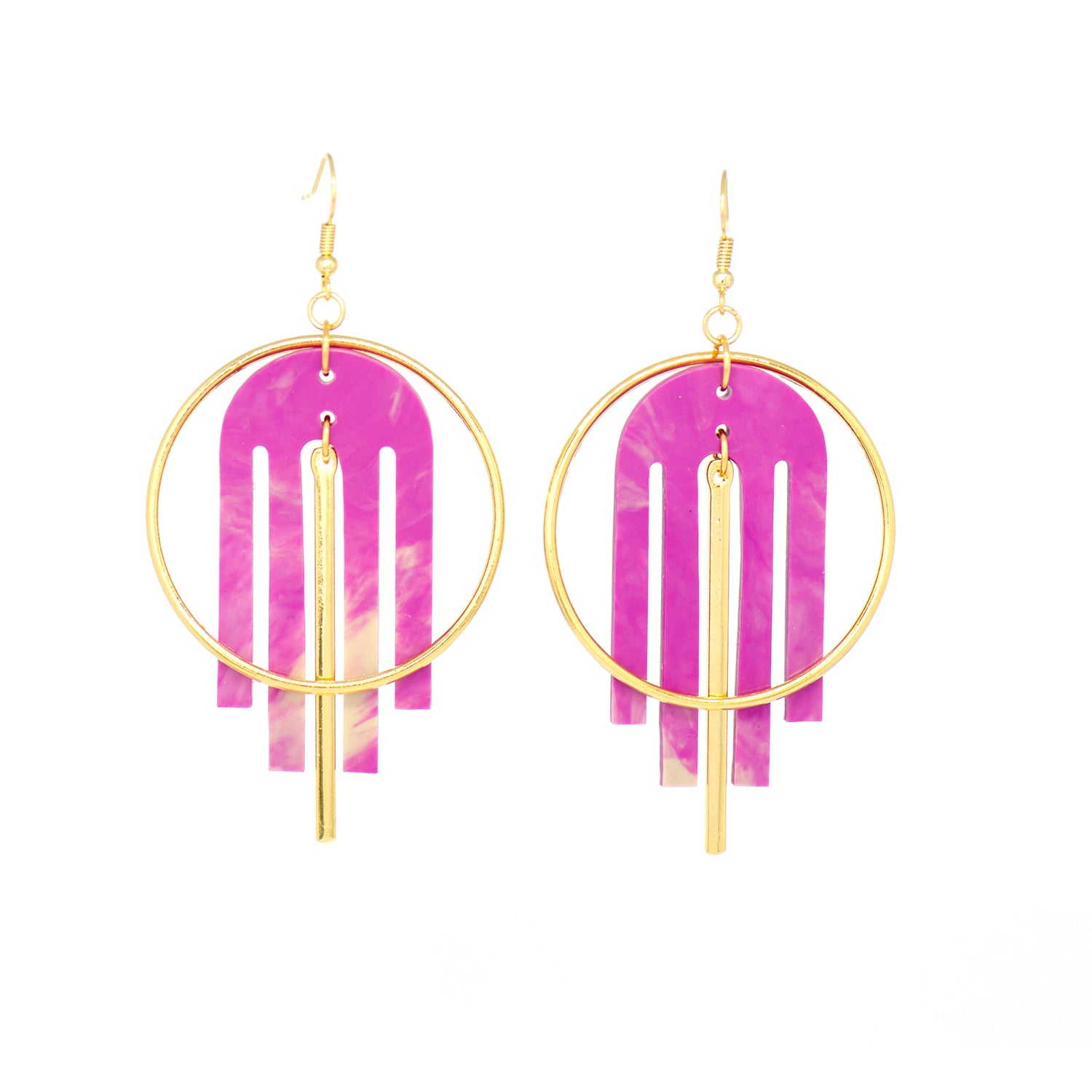 Introducing our Arch Deco Earrings, the perfect balance of modern aesthetics and timeless Art Deco design. These earrings feature a marbled plastic arch encircled by a stunning gold halo, with a sleek gold bar suspended in the center. Designed for ultimate comfort, the lightweight materials and flexible components ensure minimal discomfort while providing effortless movement. Get ready to stand out and add a touch of glamour to any outfit with our Arch Deco Earrings.